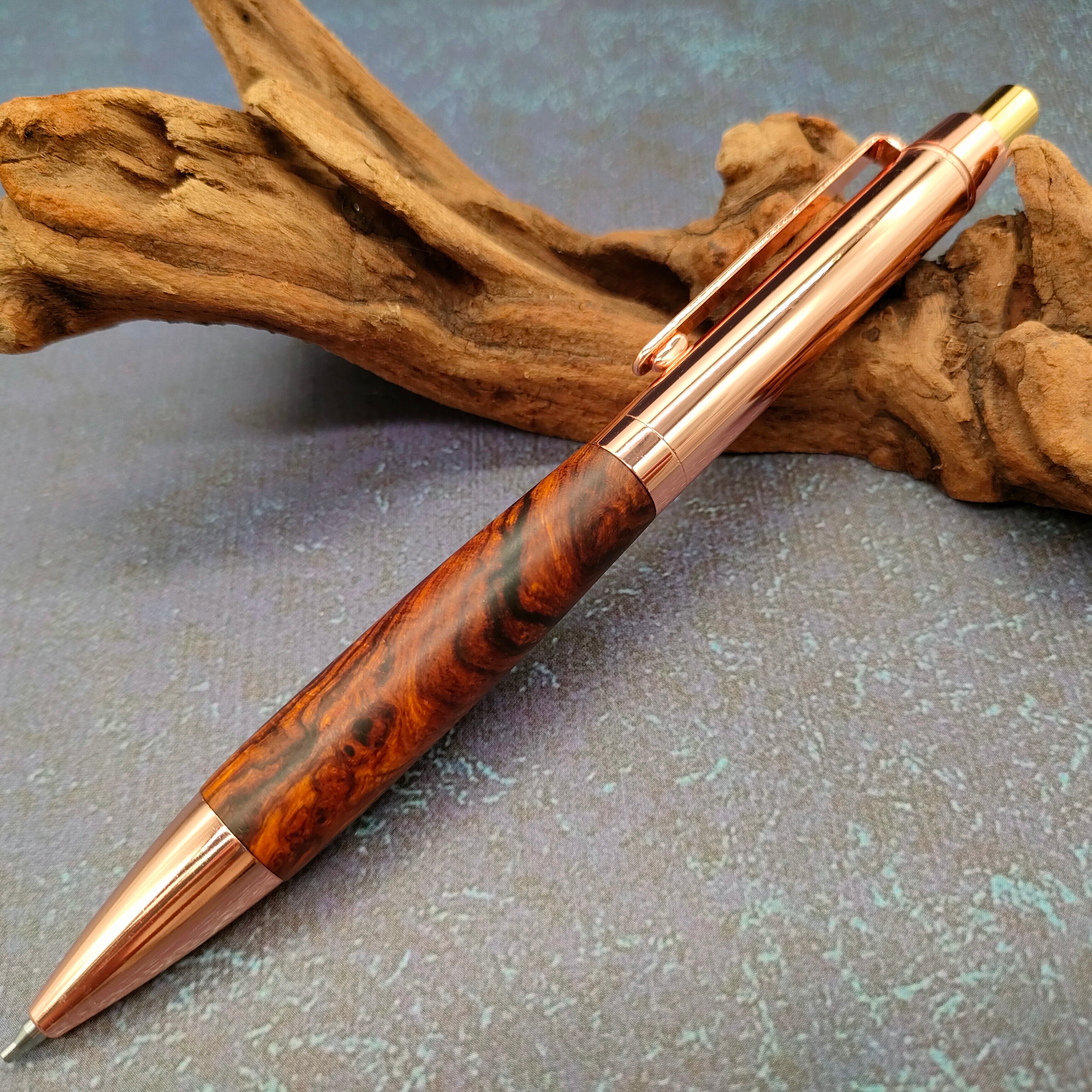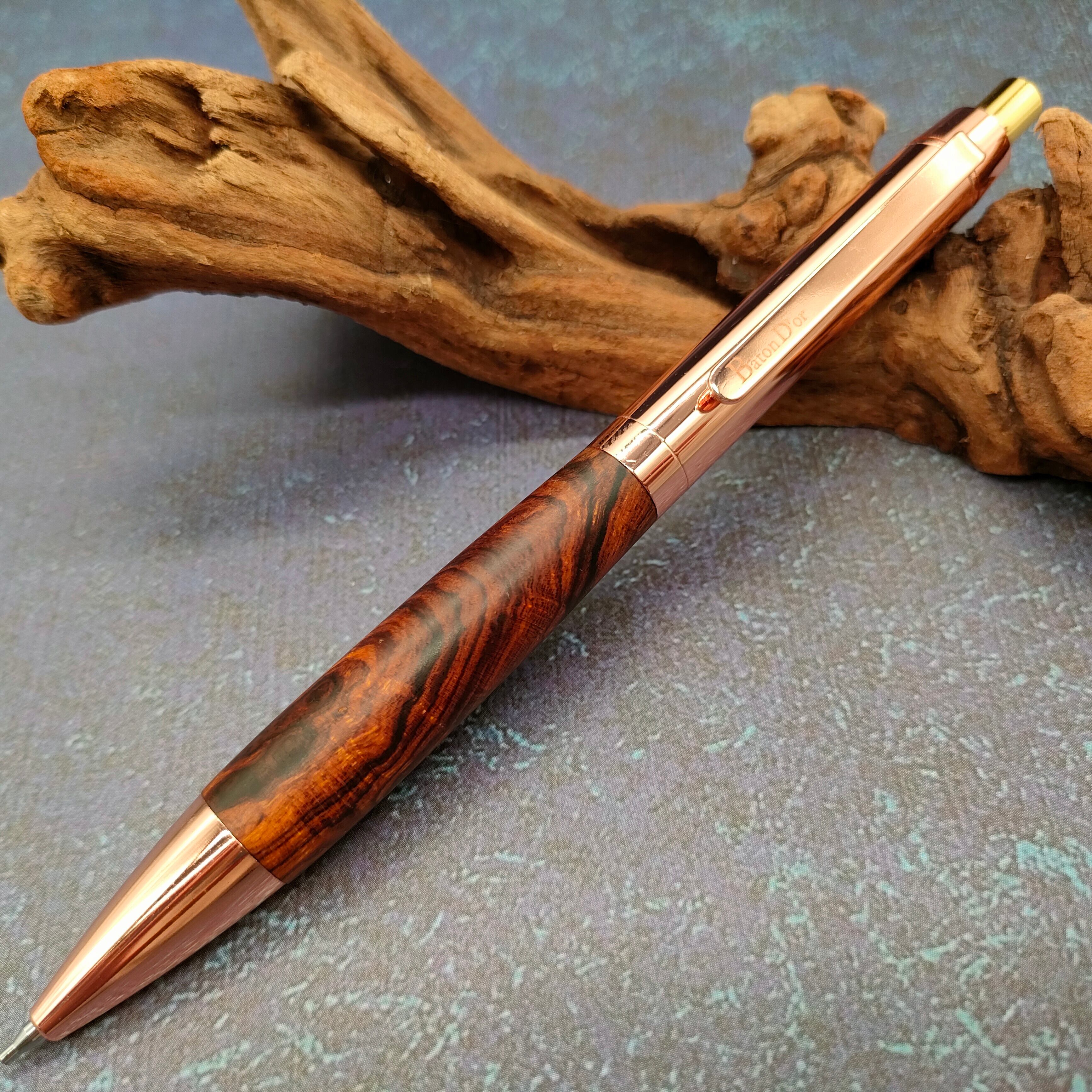 Bâton D'or(バトンドール)のツイストボールペンの金具をカスタマイズしたコラボカスタムシャープペンシルです。コッパーカラーが美しく形状もエレガントな設計となっております。