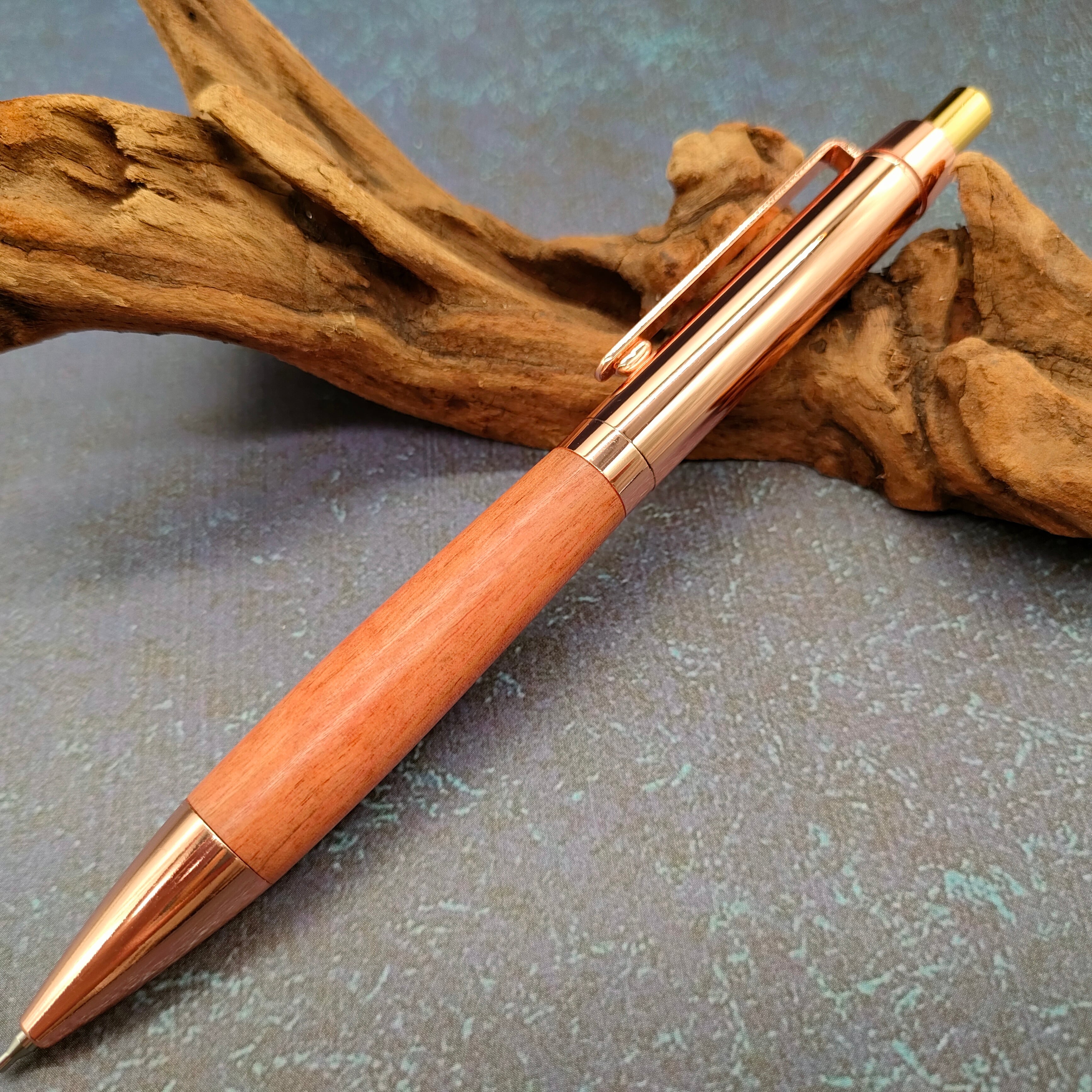 Bâton D'or(バトンドール)のツイストボールペンの金具をカスタマイズしたコラボカスタムシャープペンシルです。コッパーカラーが美しく形状もエレガントな設計となっております。