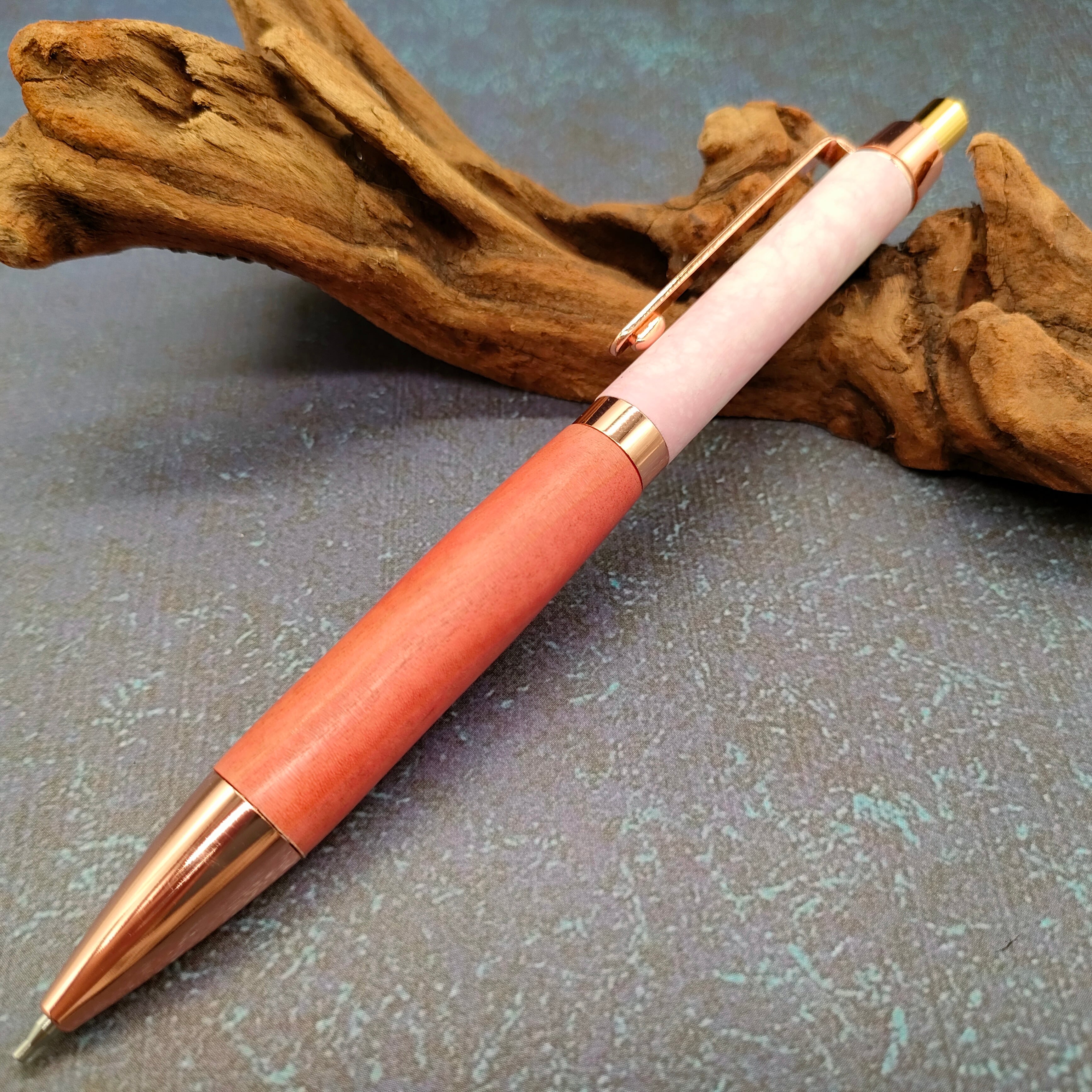 Bâton D'or(バトンドール)のツイストボールペンの金具をカスタマイズしたコラボカスタムシャープペンシルです。コッパーカラーが美しく形状もエレガントな設計となっております。