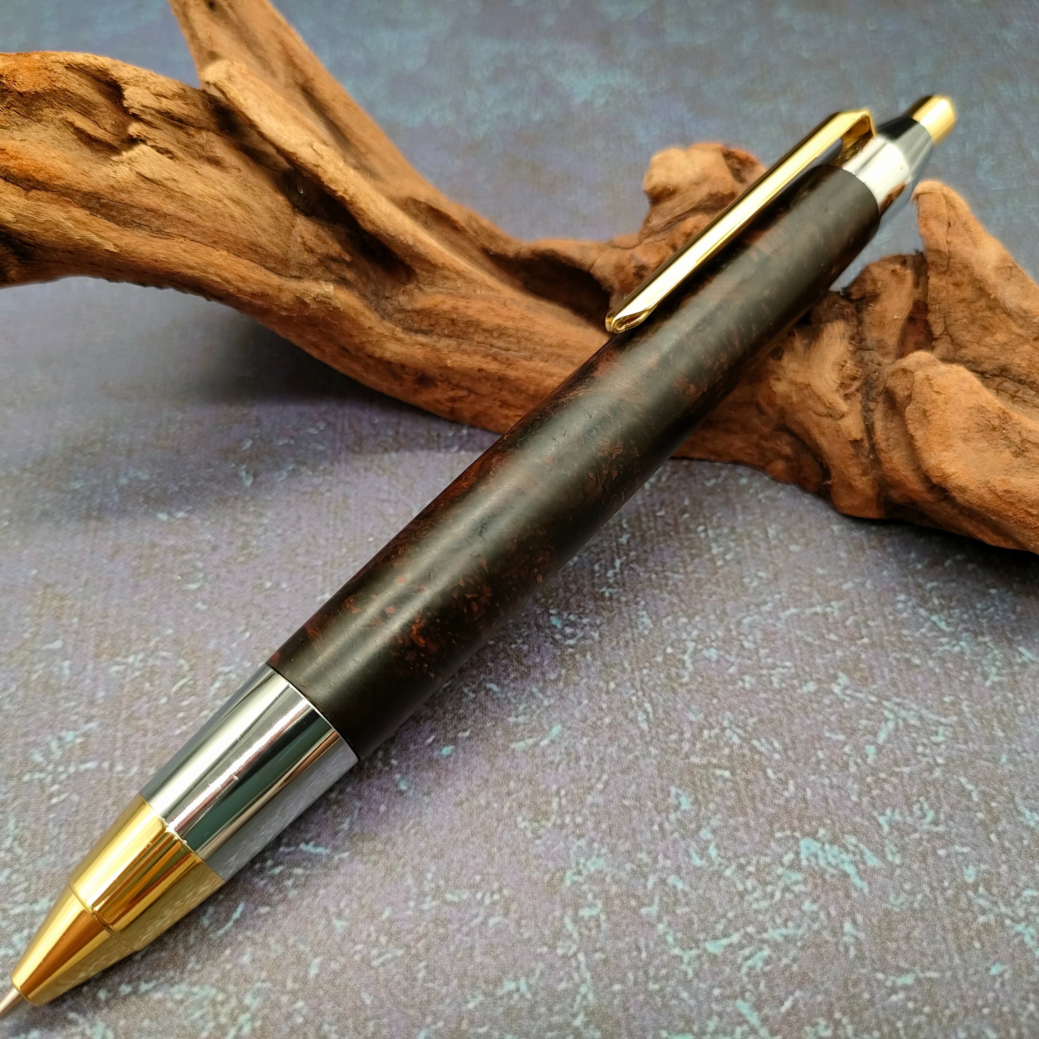 【ZAWASOUオリジナル金具】木軸シャープペンシル アフリカンブラックウッド瘤 W15