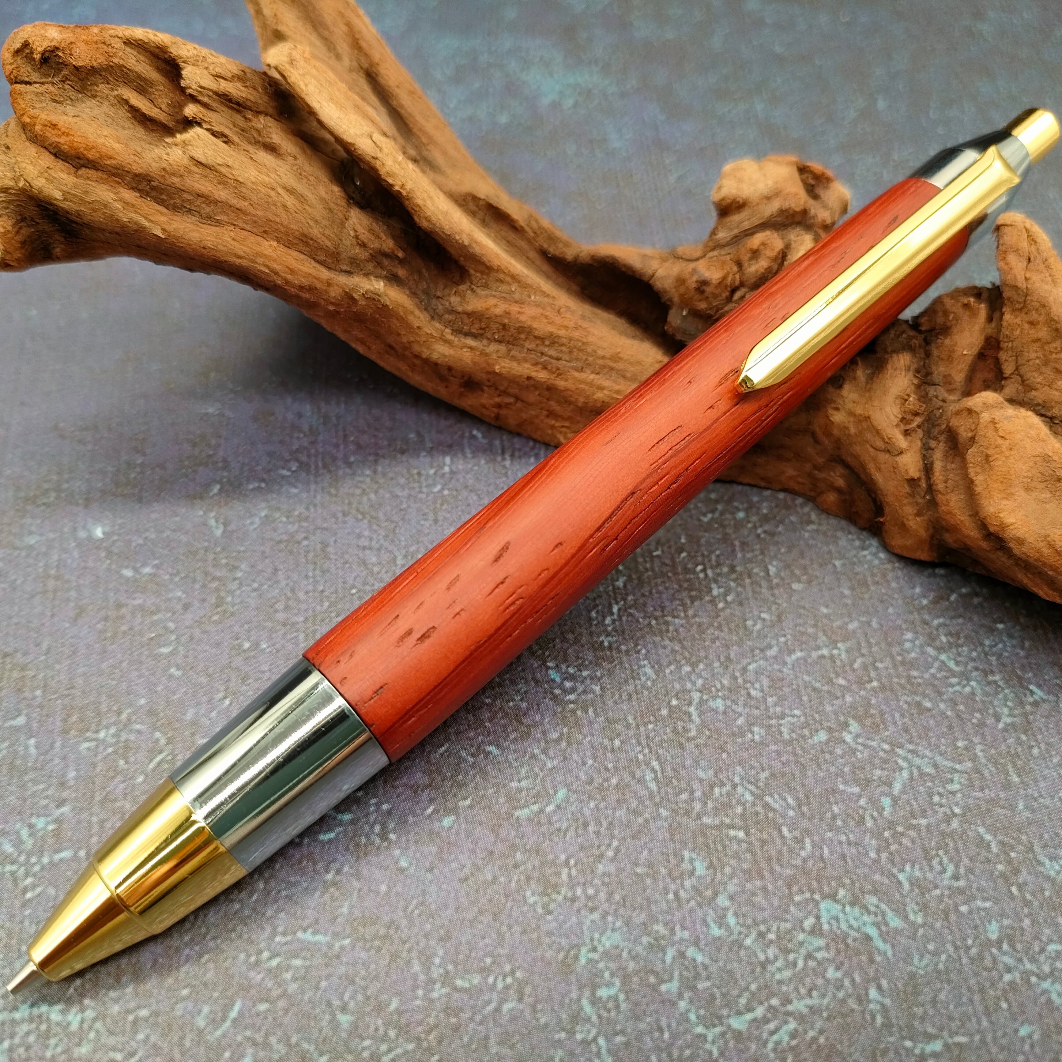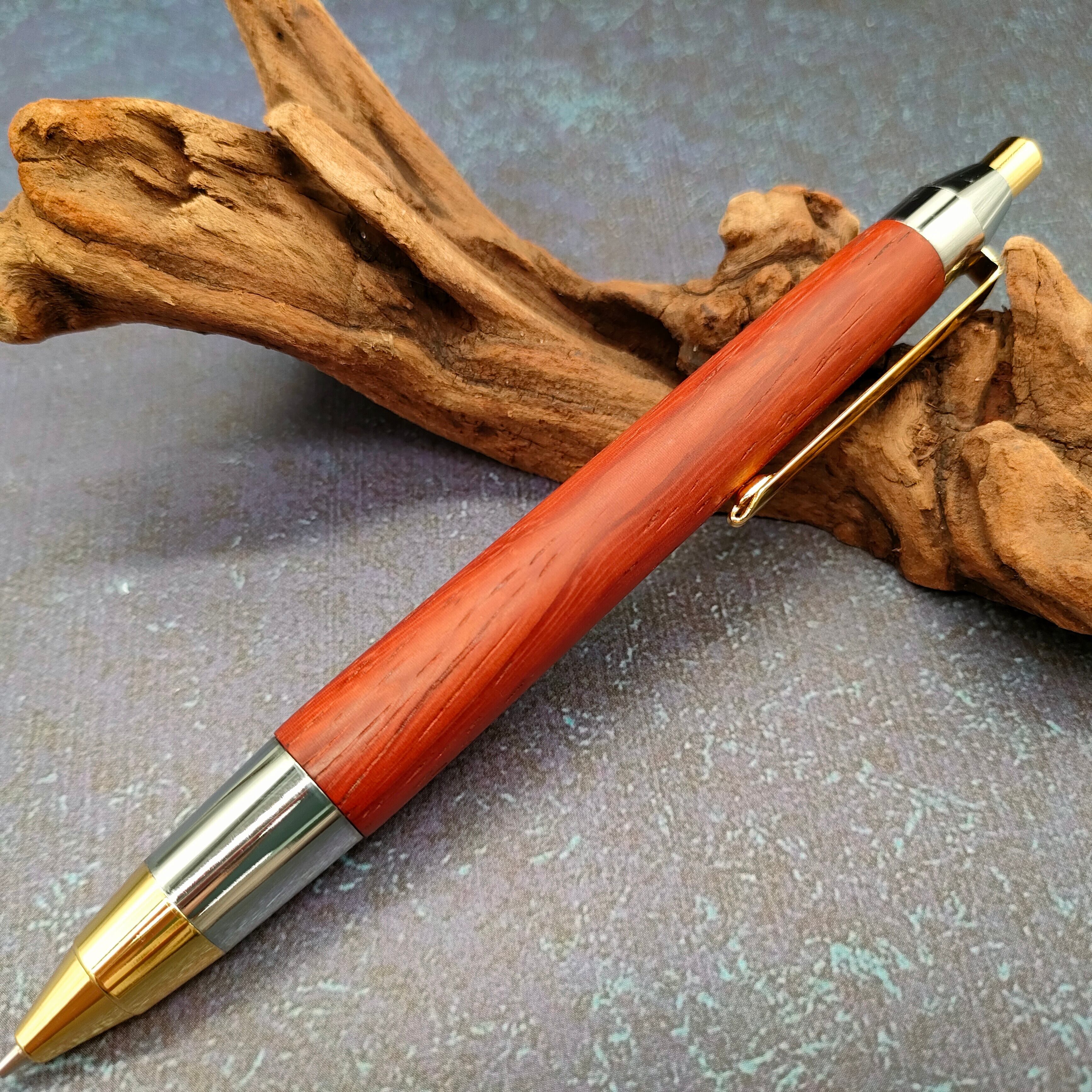 【ZAWASOUオリジナル金具】木軸シャープペンシル 紅紫檀(ベニシタン) W39