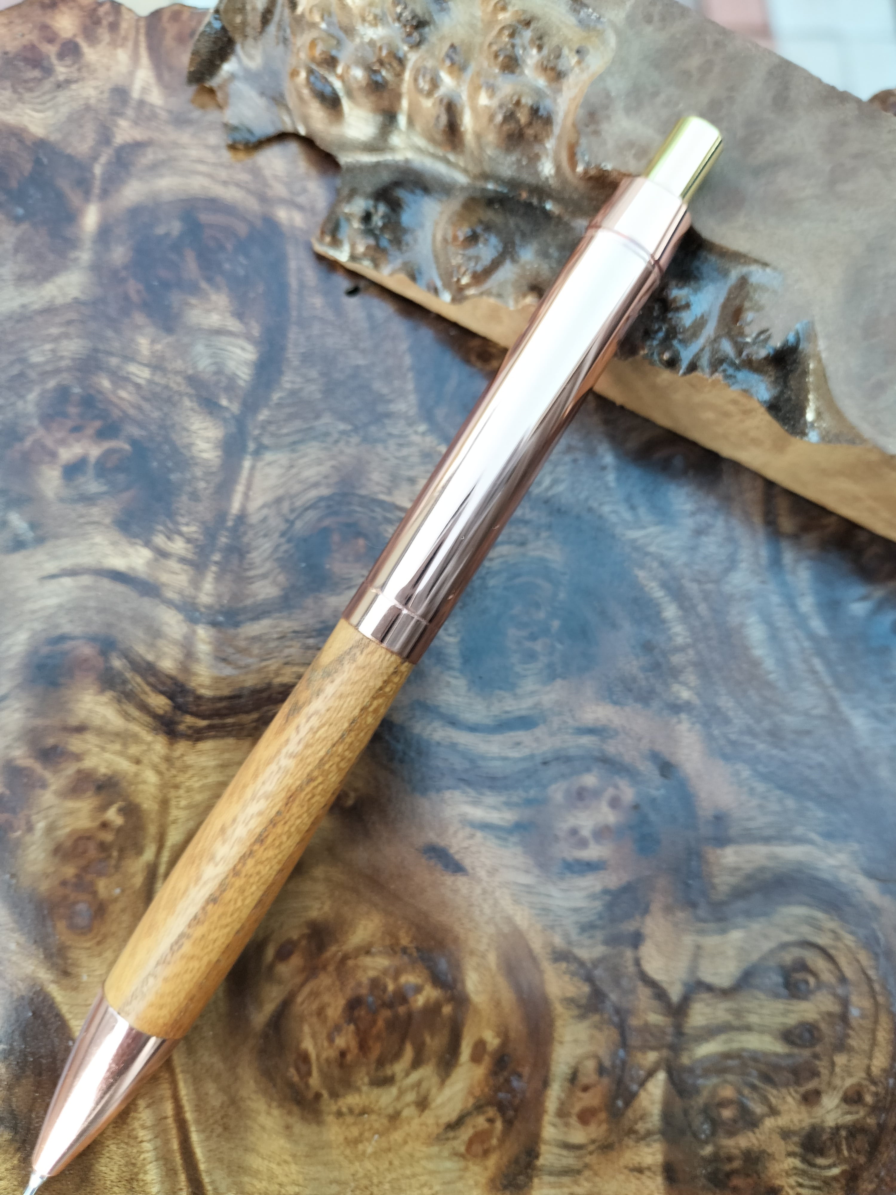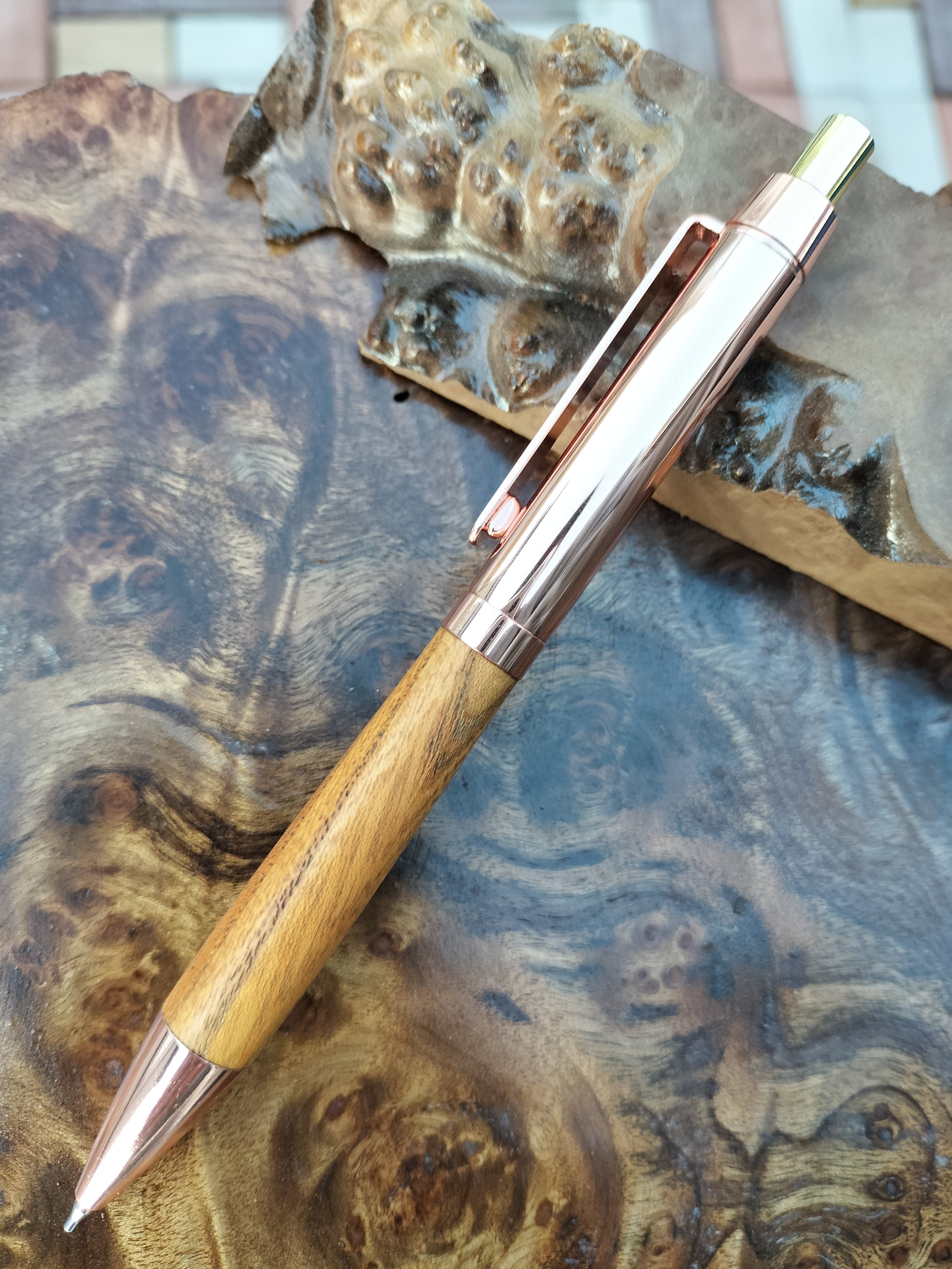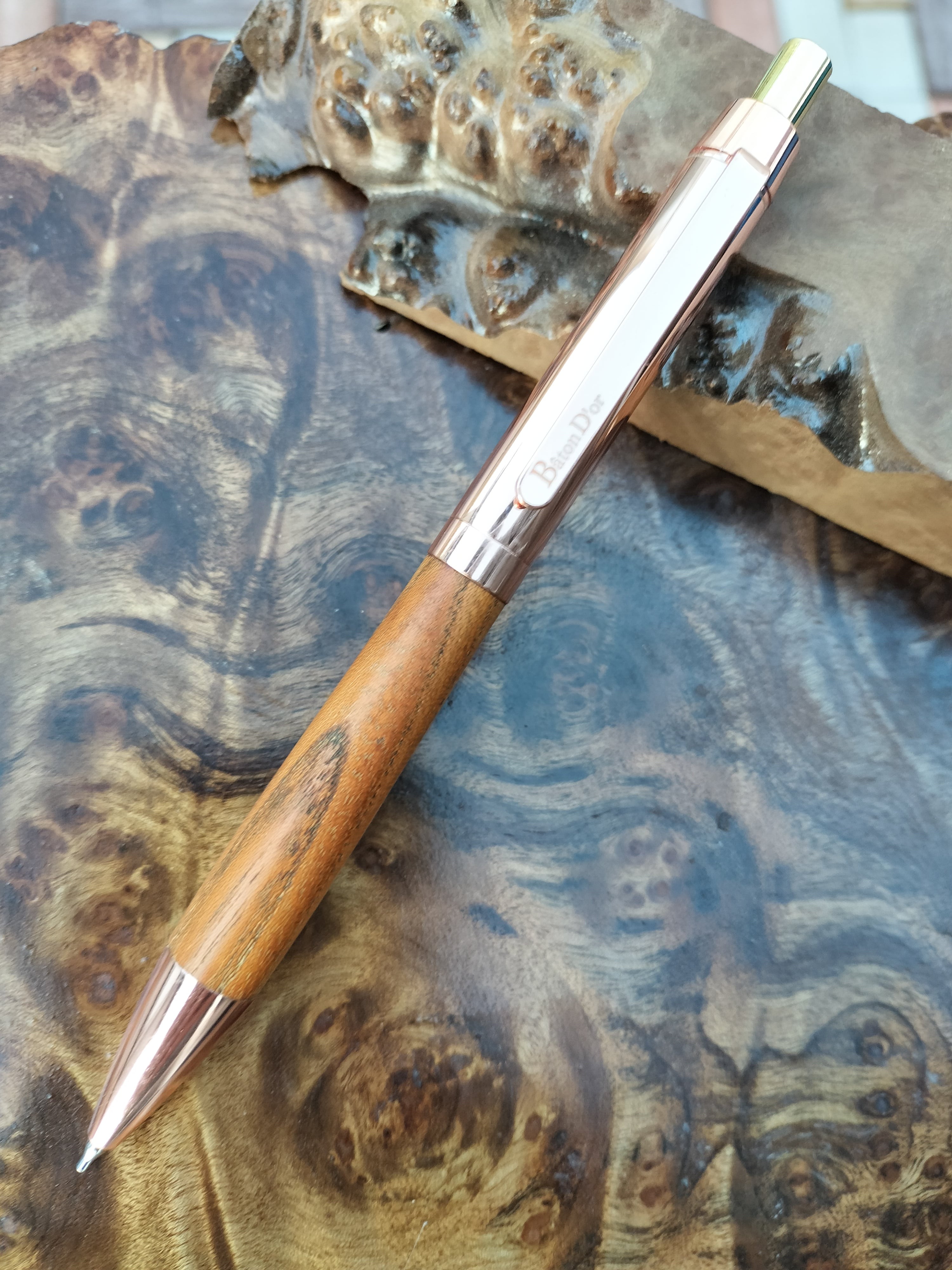 Bâton D'or(バトンドール)のツイストボールペンの金具をカスタマイズしたコラボカスタムシャープペンシルです。コッパーカラーが美しく形状もエレガントな設計となっております。