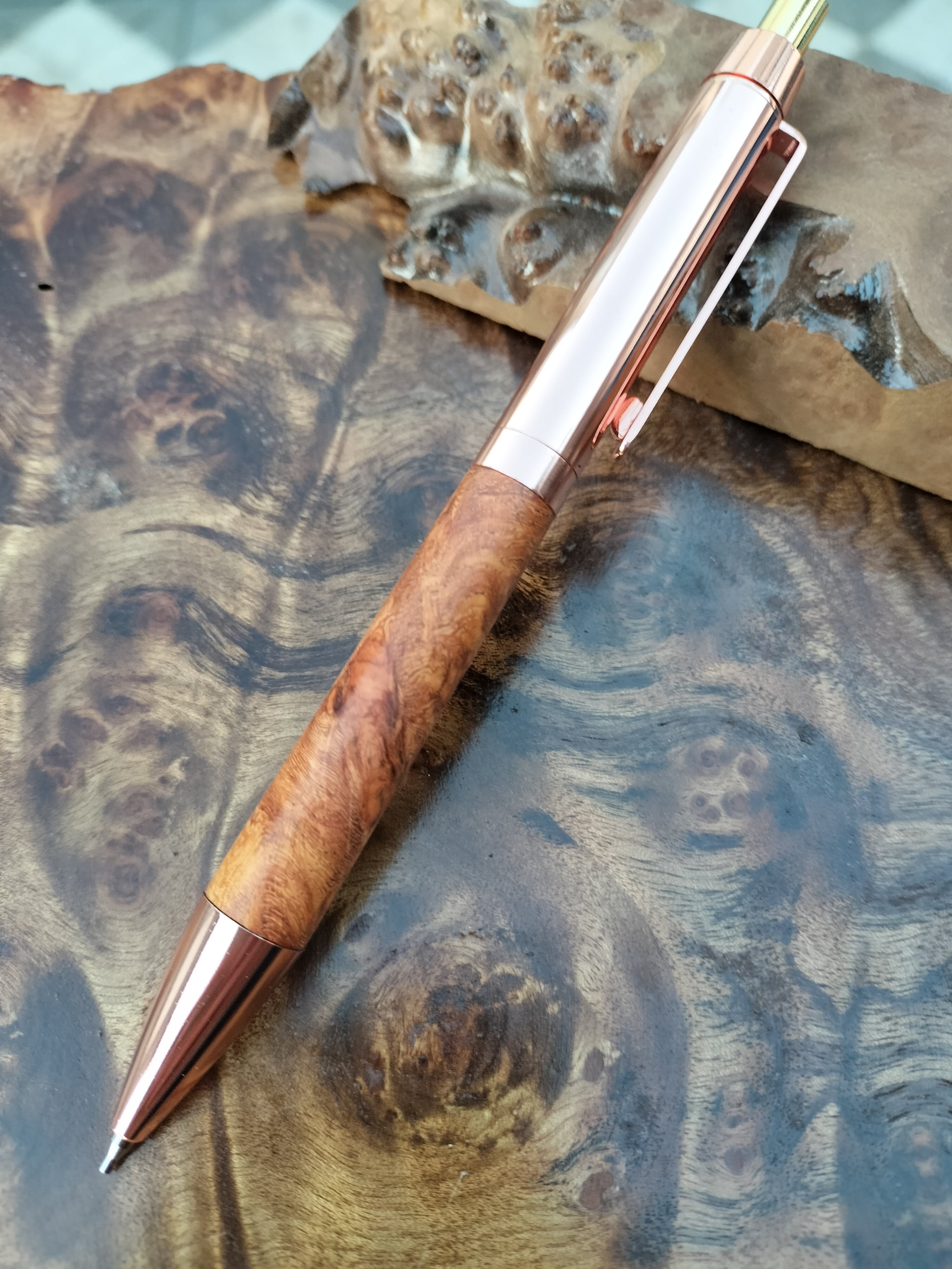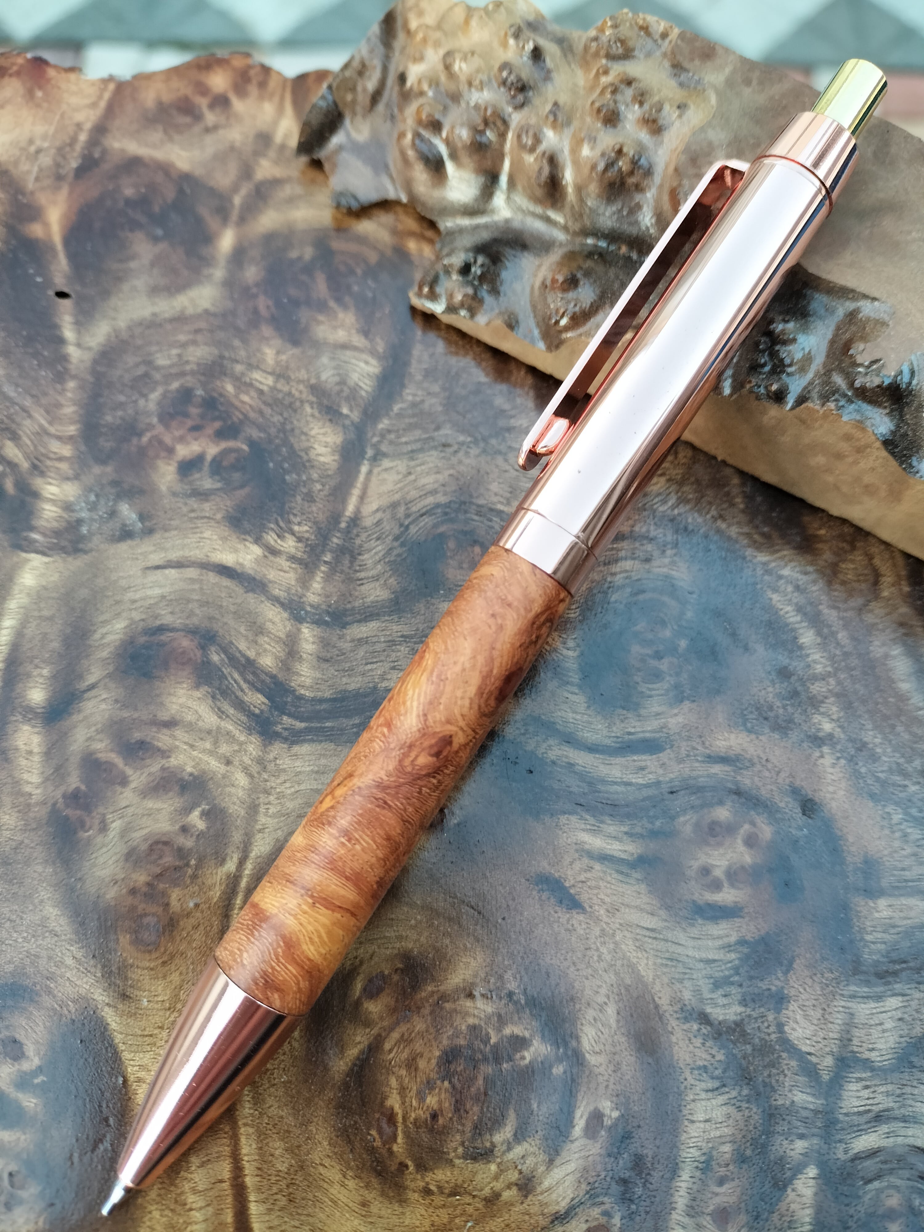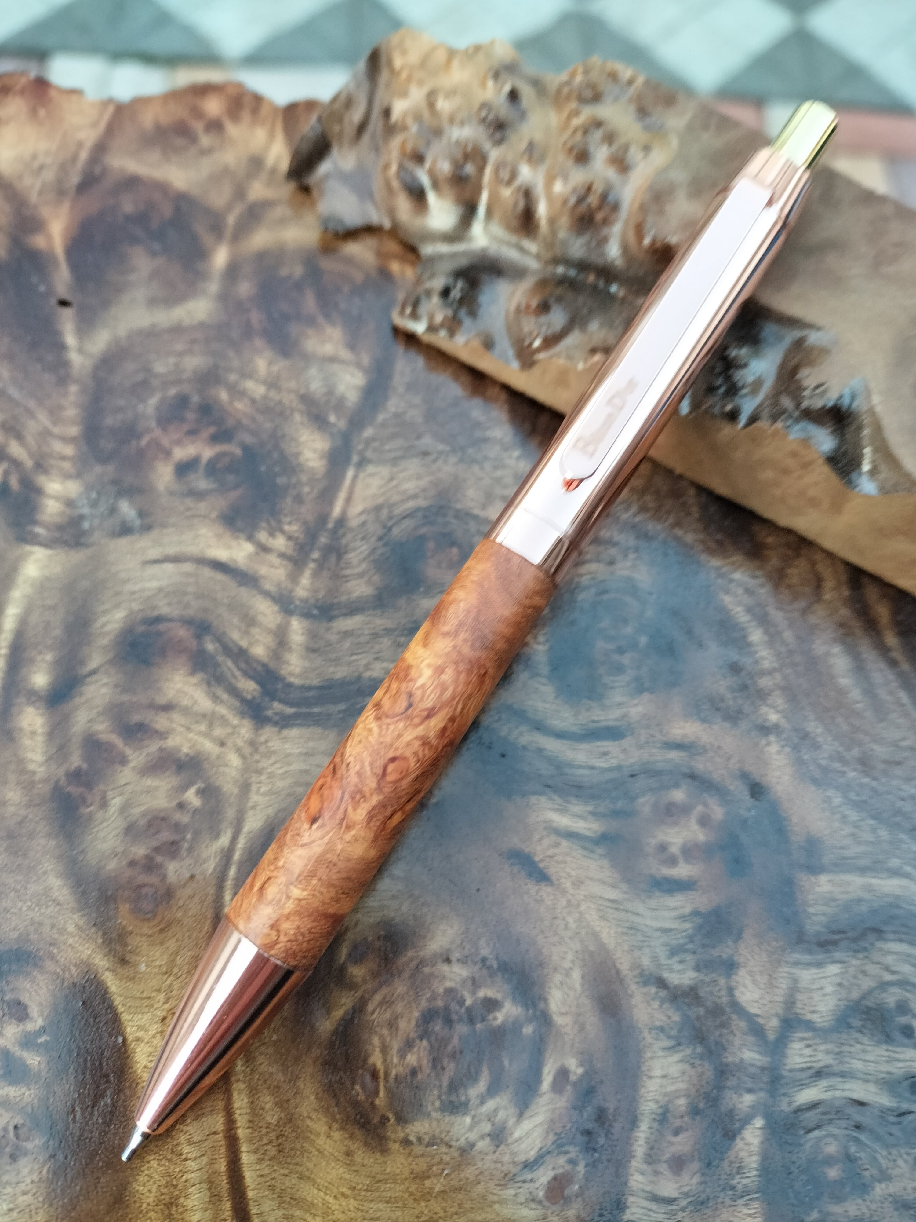 Bâton D'or(バトンドール)のツイストボールペンの金具をカスタマイズしたコラボカスタムシャープペンシルです。コッパーカラーが美しく形状もエレガントな設計となっております。